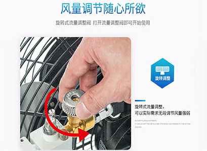 使用空气压缩机所制造的压缩机空气驱动马达,带动风扇运转。